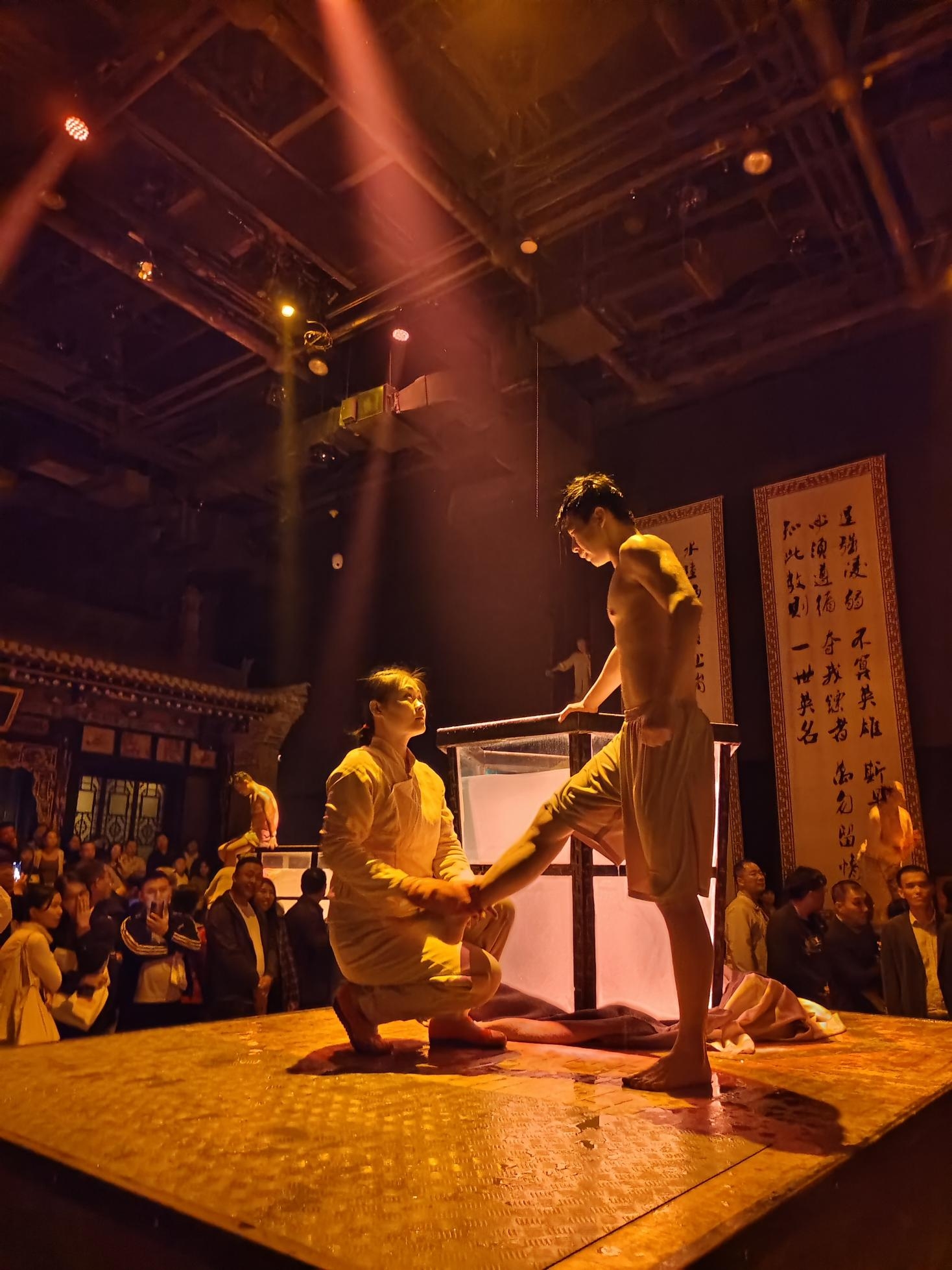 《又見平遙》是根據(jù)平遙古城歷史以及文化推出的一部震撼人靈魂的大型情景劇演出,沒有座位,沒有舞臺(tái)與觀眾席的界限。大家身在實(shí)景中,身邊是穿著另一個(gè)時(shí)代服裝的演員,在晦暗燈光的映襯下,有穿越歷史的恍惚。