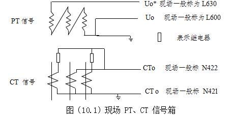 a ) PT信號采用開口三角形接線方式,CT信號采用套裝零序CT的方法,且極性面朝上,零序CT二次非極性端接地。如圖 10.2 所示
