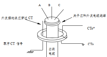 全部為電纜出線的系統(tǒng),通常每條出線加裝一零序互感器,二次線接入裝置,CT的極性保持一致。