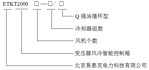 型號舉例:ETKT2000 12-4/Q則為北京易泰克電力科技有限公司生產(chǎn)的12個風(fēng)機4組冷卻器強油循環(huán)風(fēng)冷智能控制箱