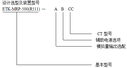 ?ETK-MRP-500(R511)低壓電動機保護選型比較簡單,基本型號后包括四位擴展型號,